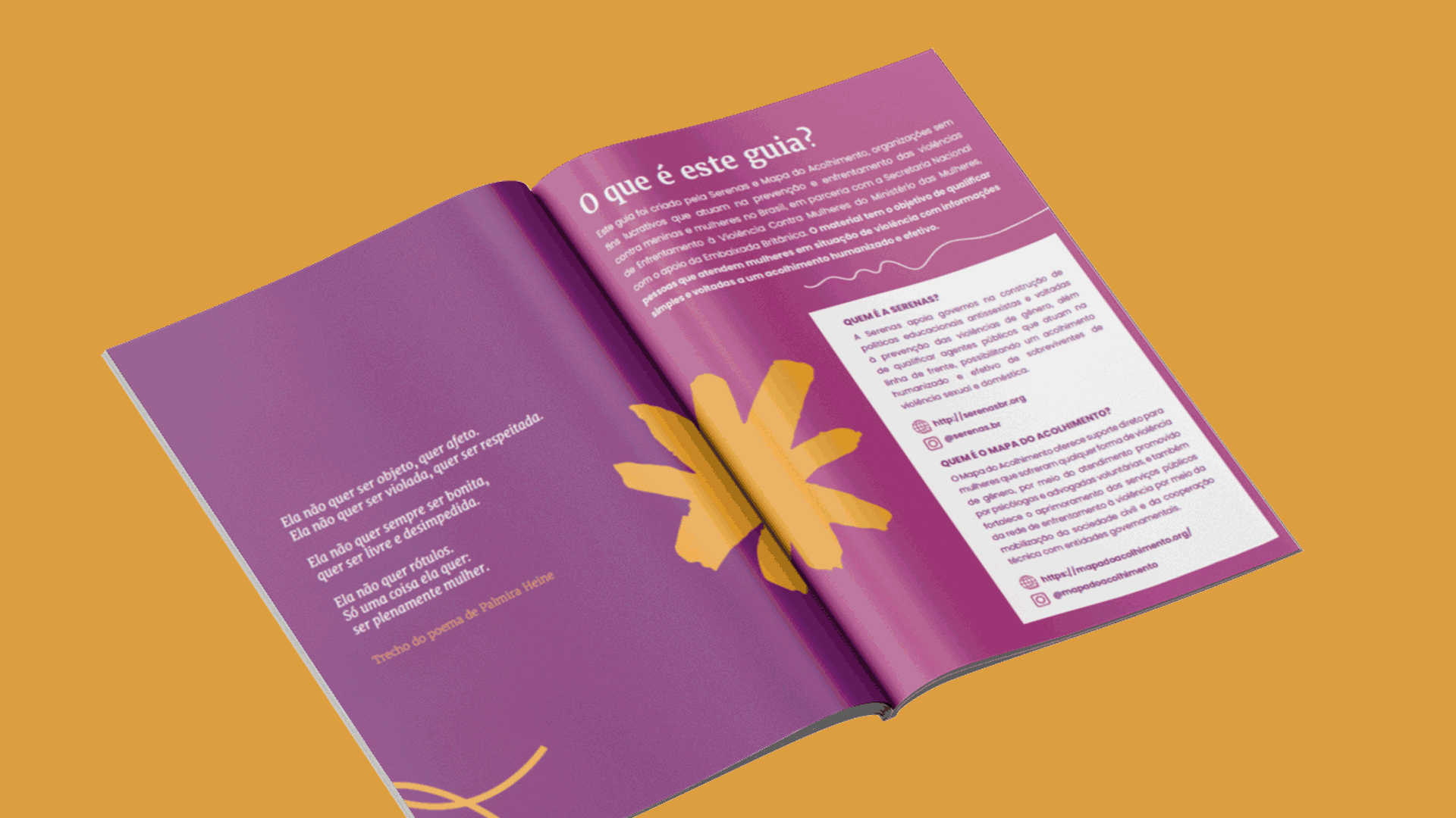 Identidade e programação visual de toda comunicação da iniciativa Serenas em parceria com Mapa do Acolhimento e Ministério das Mulheres do Governo do Brasil