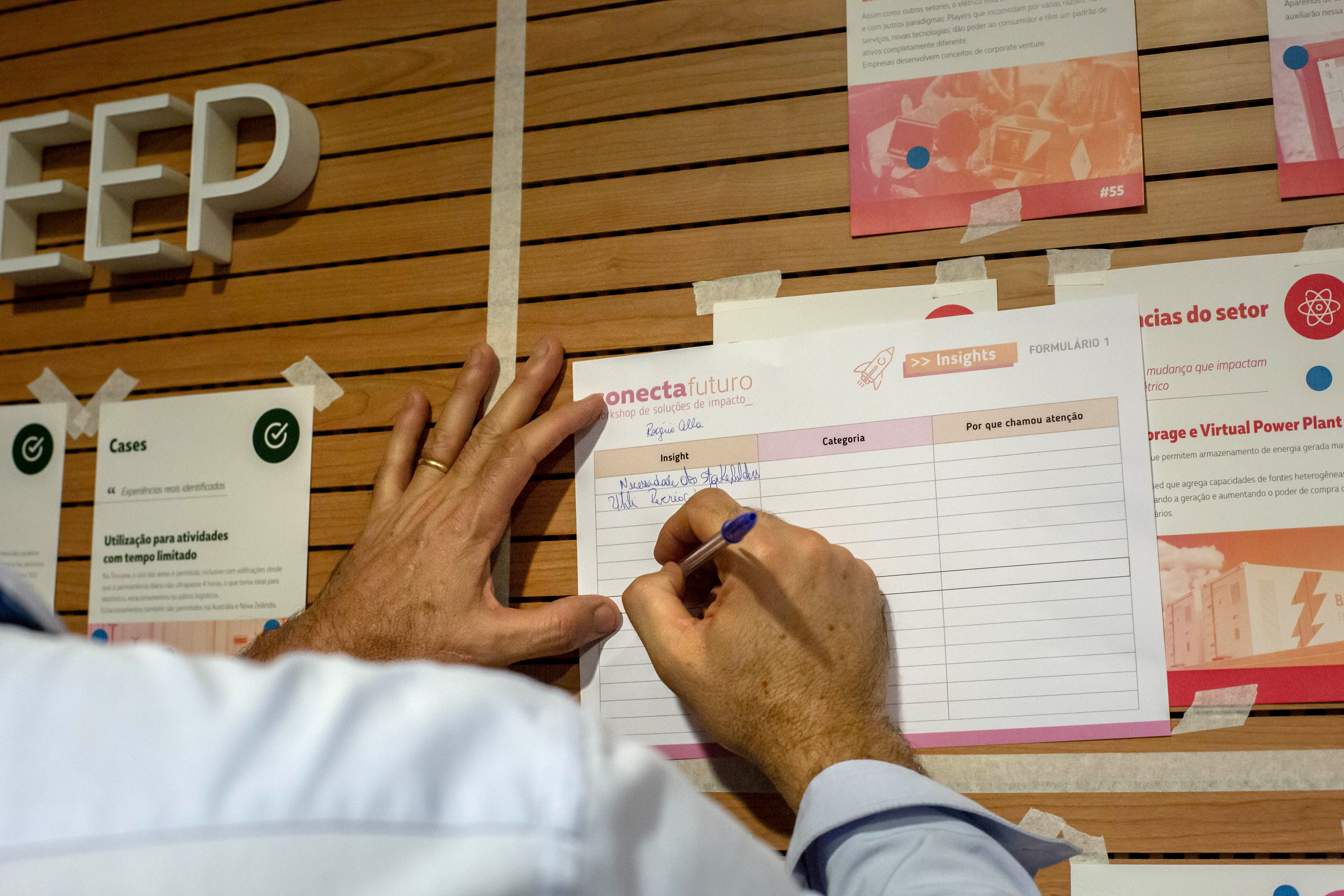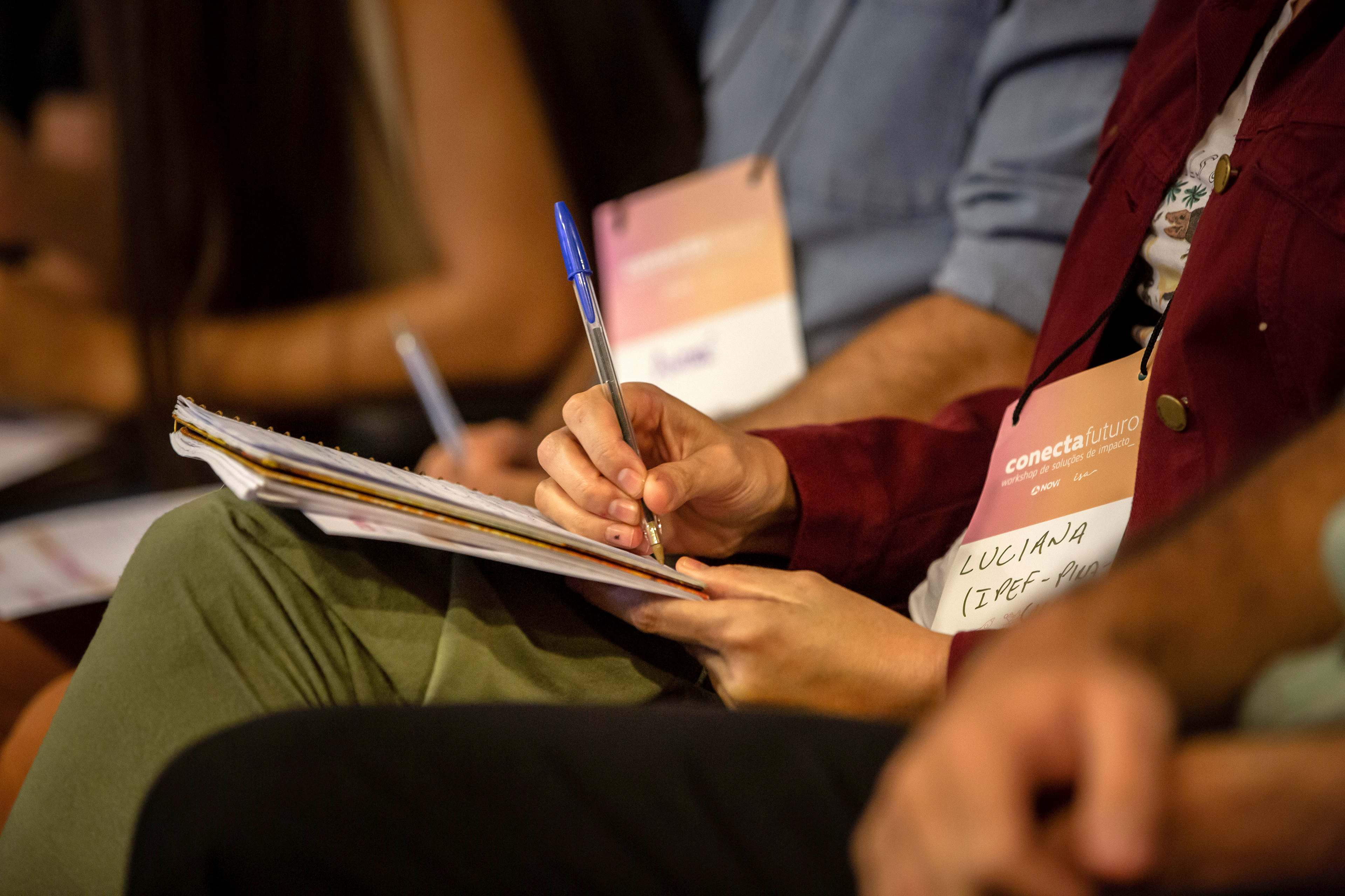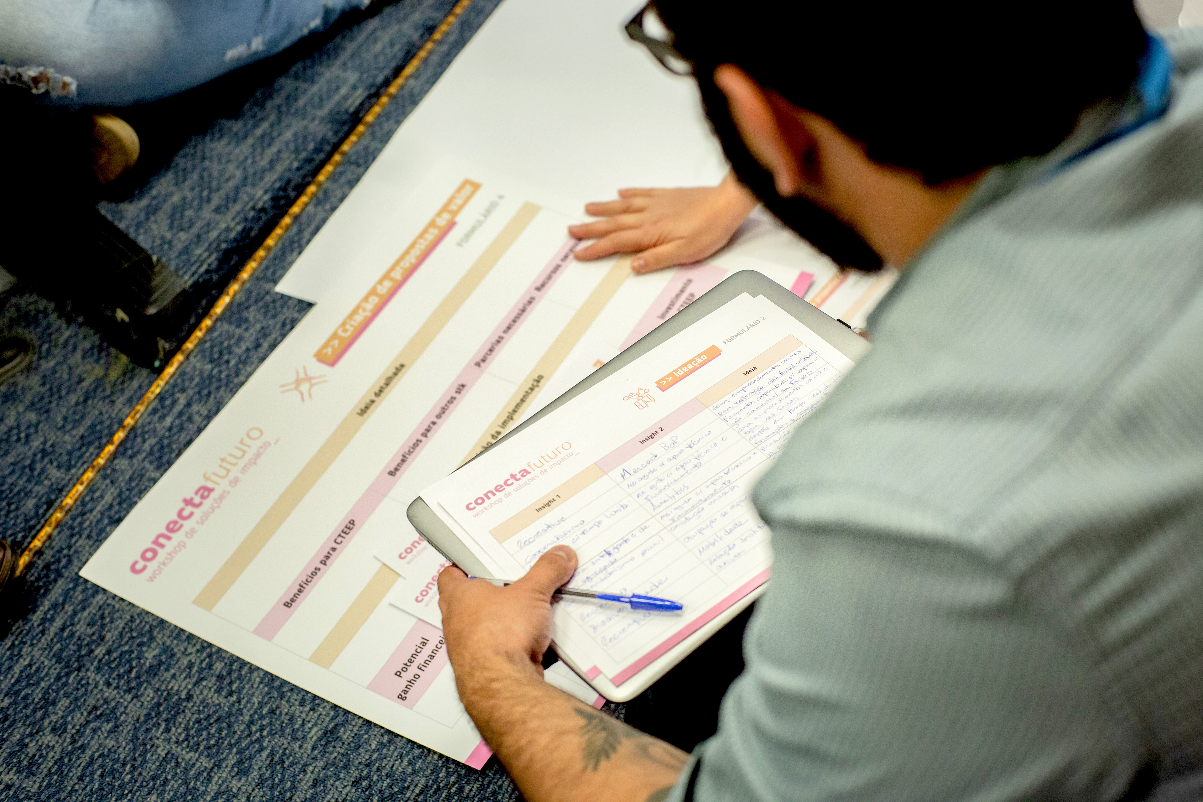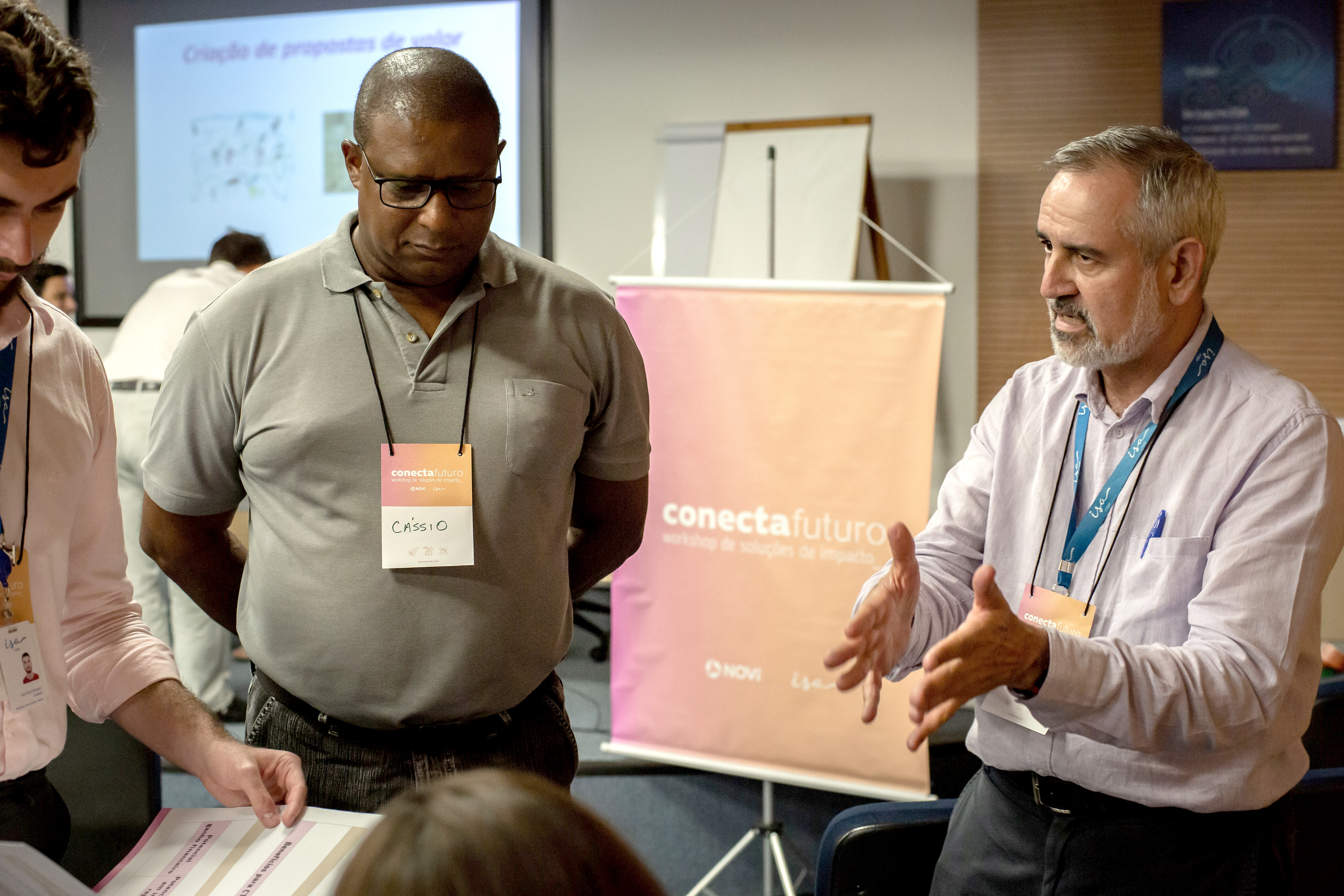 Criação de identidade visual para workshop promovido pela Noví em parceria com a Isa CTEEP. Proposta de linguagem gráfica, marca do evento e materiais (banner, apresentação, crachá, Canvas e fichas