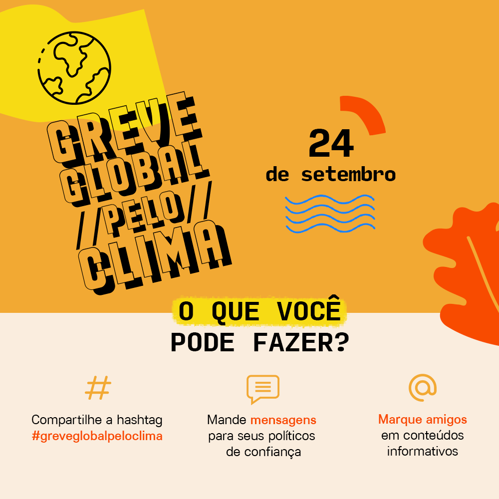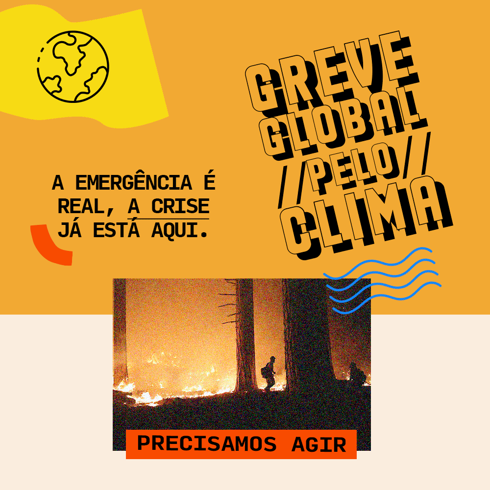 Criação de marca, elementos gráficos de apoio e desdobramento de peças para a Greve Global pelo Clima