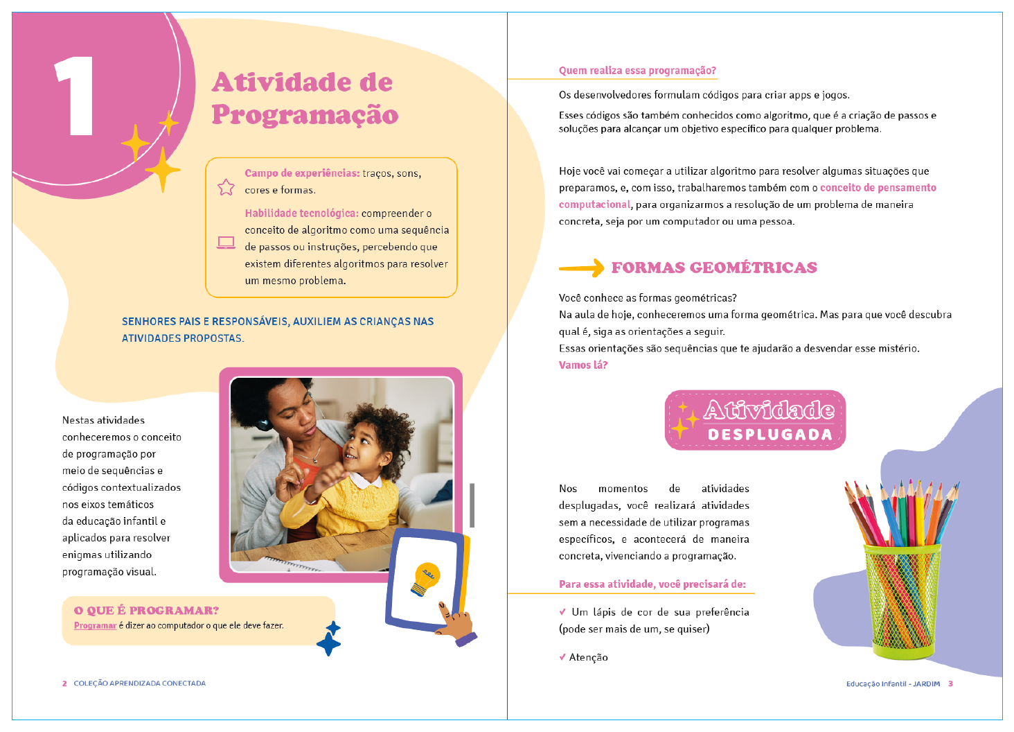 Desenvolvimento do projeto gráfico de uma coleção de materiais didáticos focada em trazer o universo da Programação/Pensamento Tech para crianças de escolas públicas.