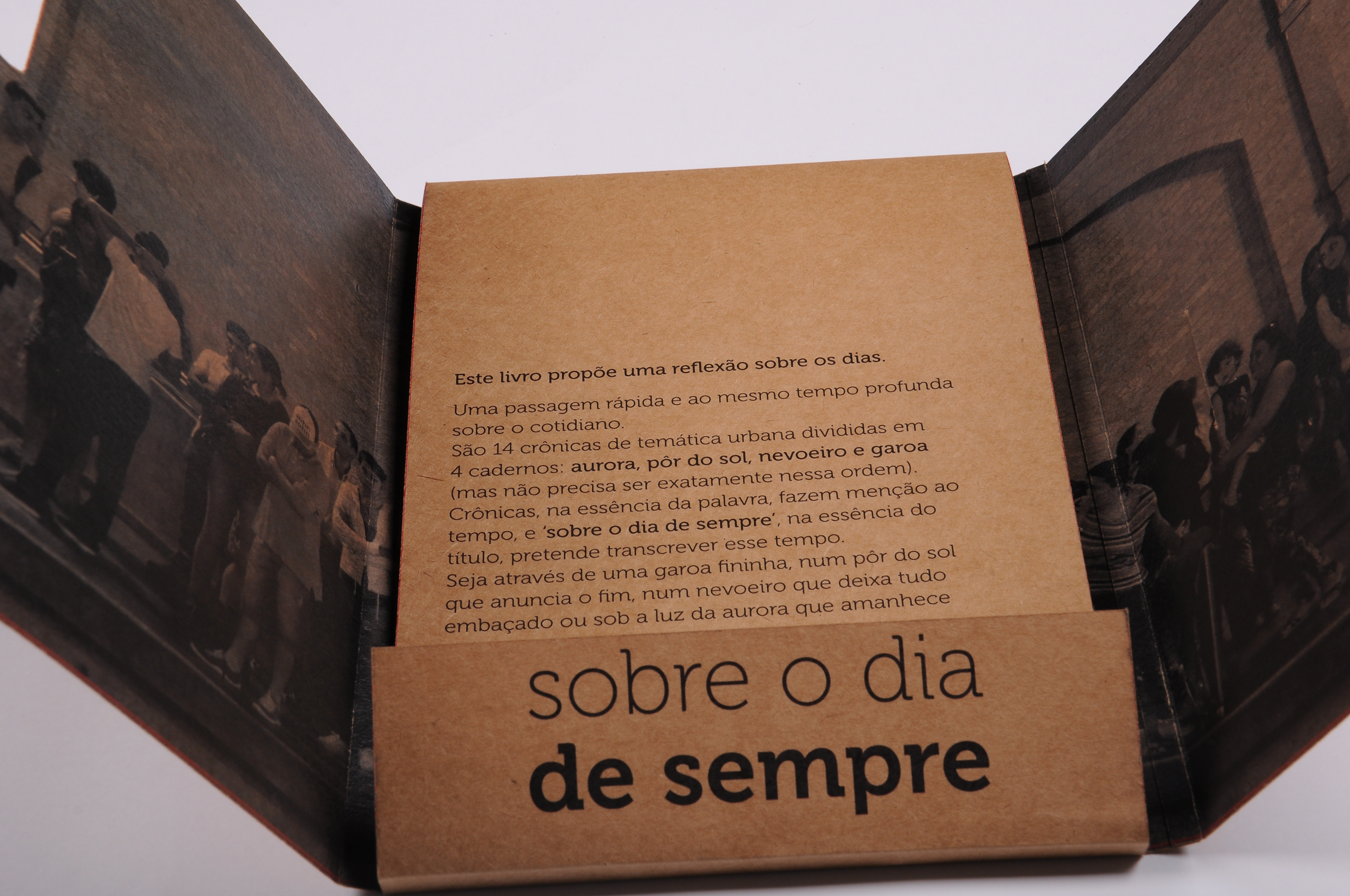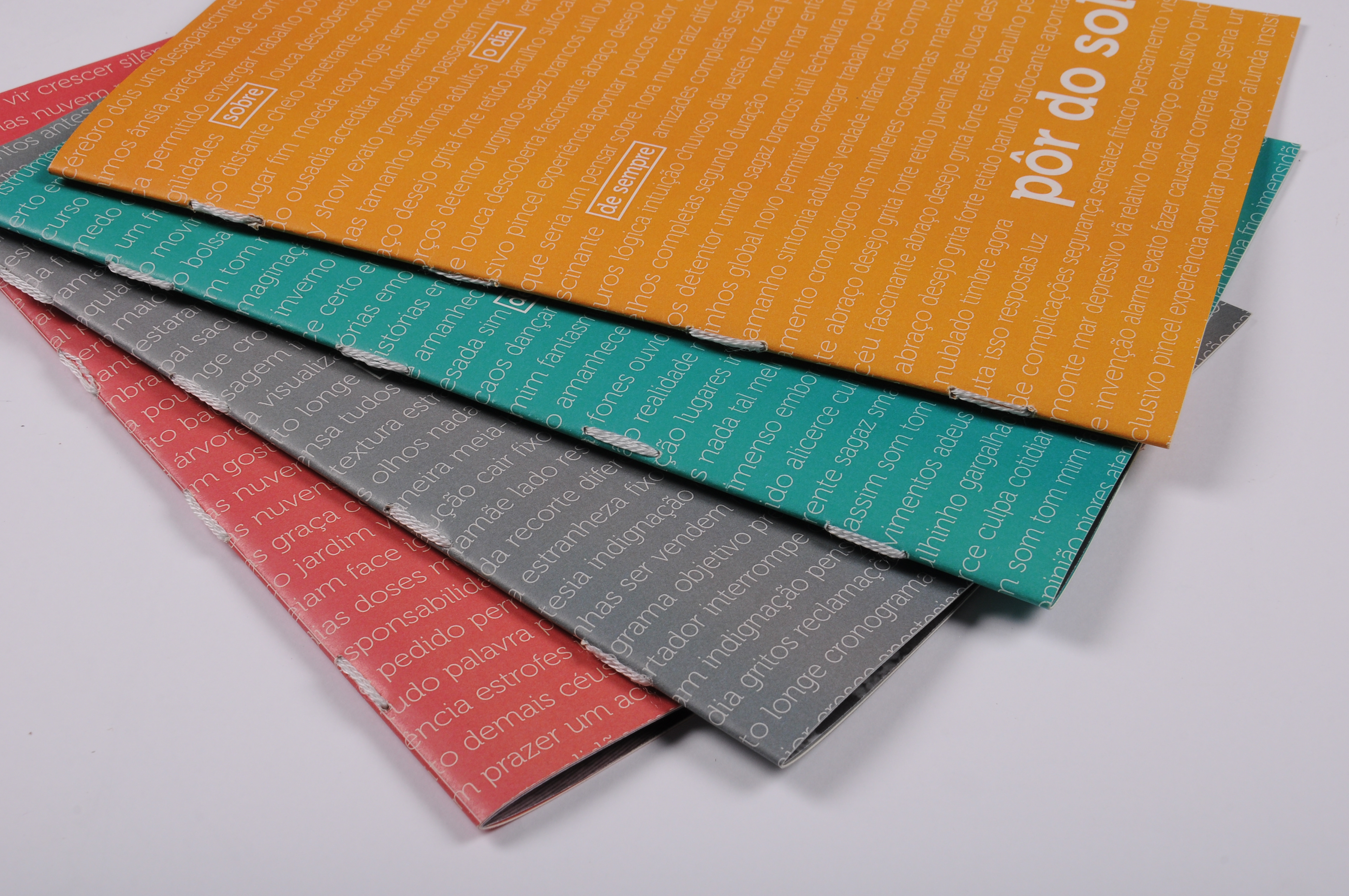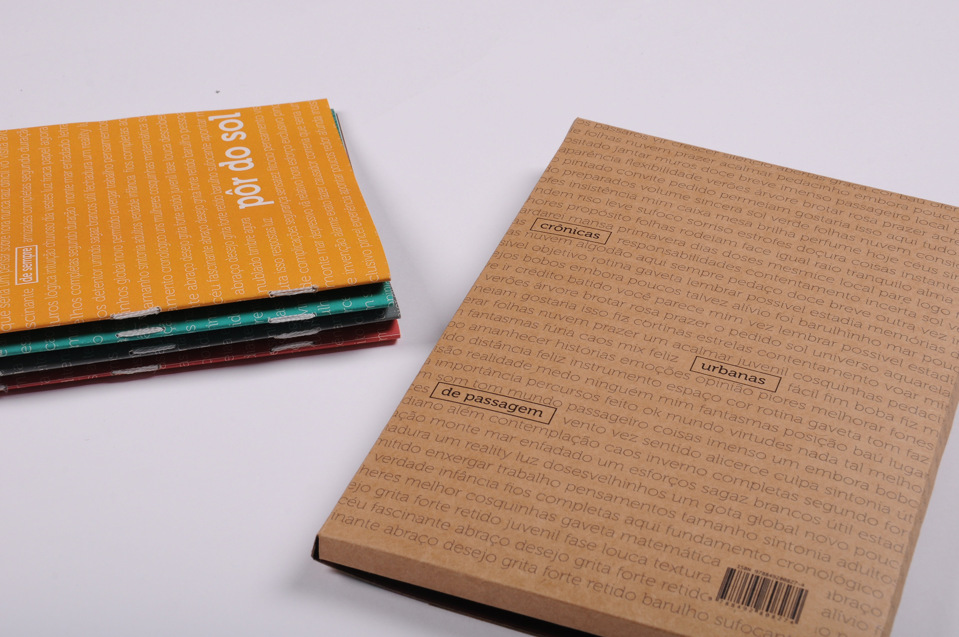 Os 4 cadernos separados propõe uma característica autônoma de navegação sobre o livro e, para junto disso, existir também um reforço de identidade, foi decidido a utilização de uma luva para guarda dos cadernos. Os cadernos recebem características de cor que servem como um índice visual, que são reproduzidos em todo o caderno. Os cadernos recebem acabamento de costura do tipo canoa, aparente, que trazem uma ar artesanal e familiar à publicação.