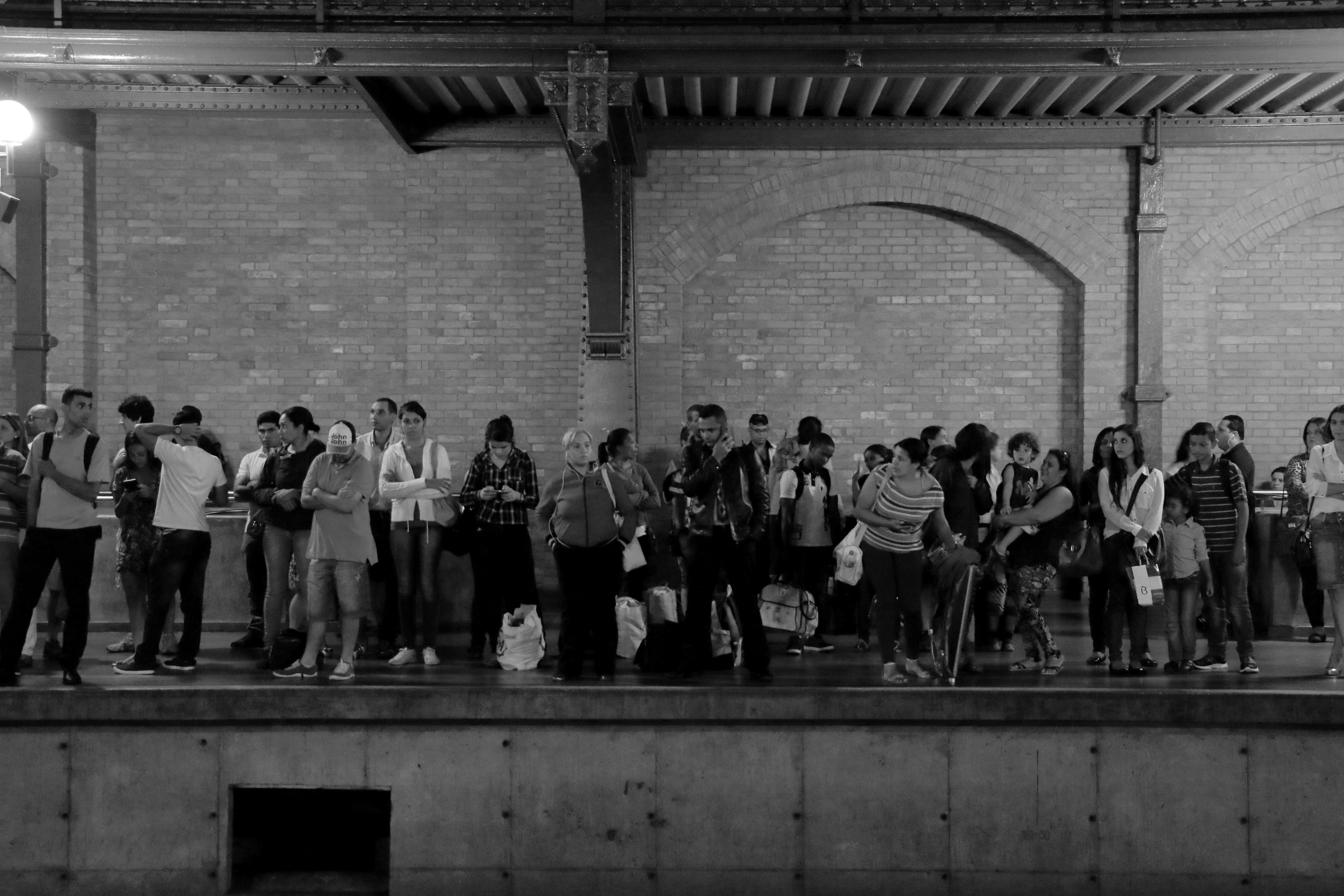 Fotografias utilizadas como elemento referencial ao norteador de familiaridade, propondo reconhecimento por meio da imagem. A característica da fotografia é documental/jornalística, e o uso do filtro p&b reforça essa linguagem. As fotos foram feitas nas estações de trem da CPTM, em referência à um cenário comum, de passagem.