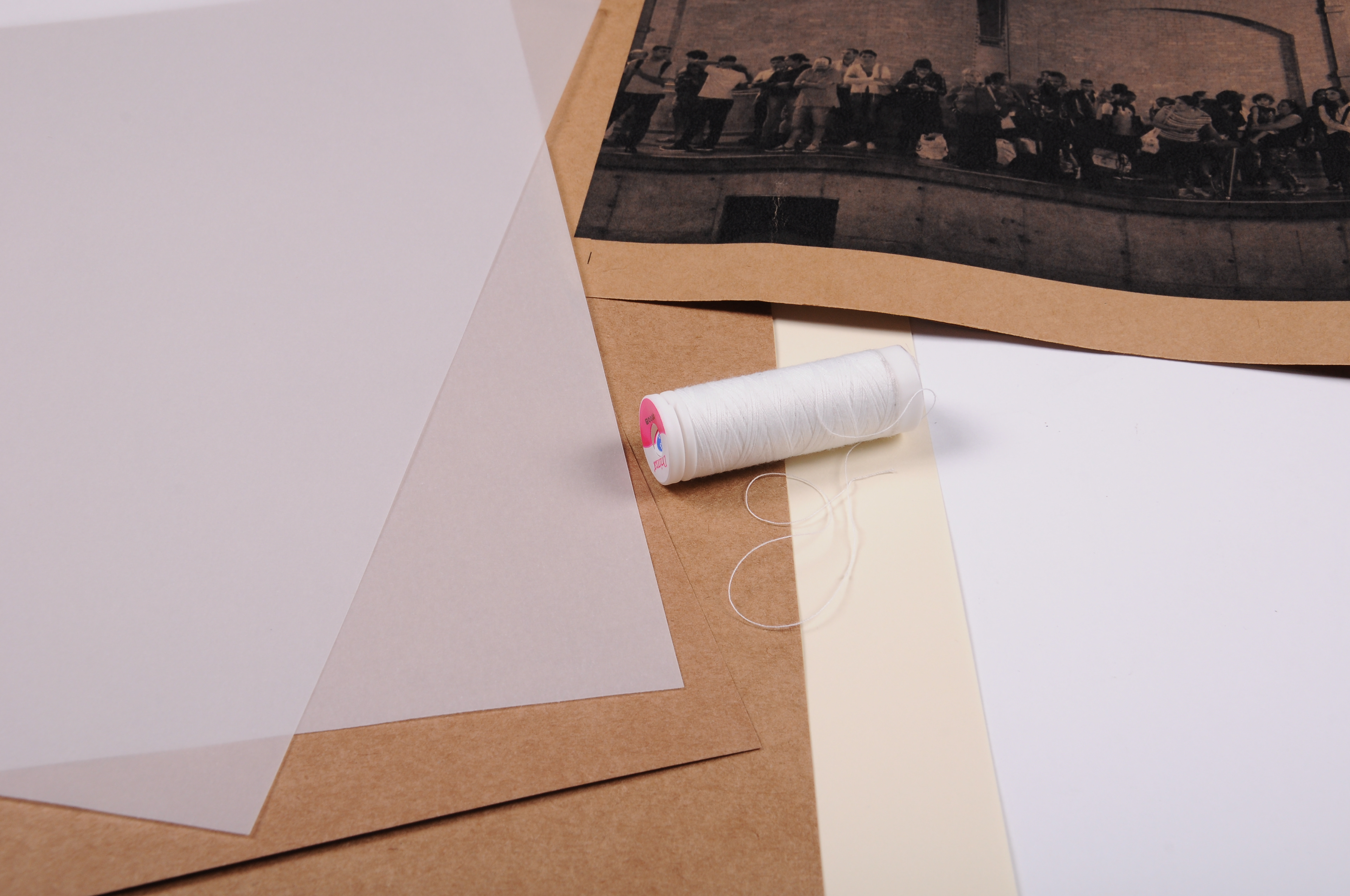 Os materiais utilizados para impressão foram: ColorPlus Marfim - para o miolo, Papel Vegetal - para as fotografias e Papel Kraft para a luva.